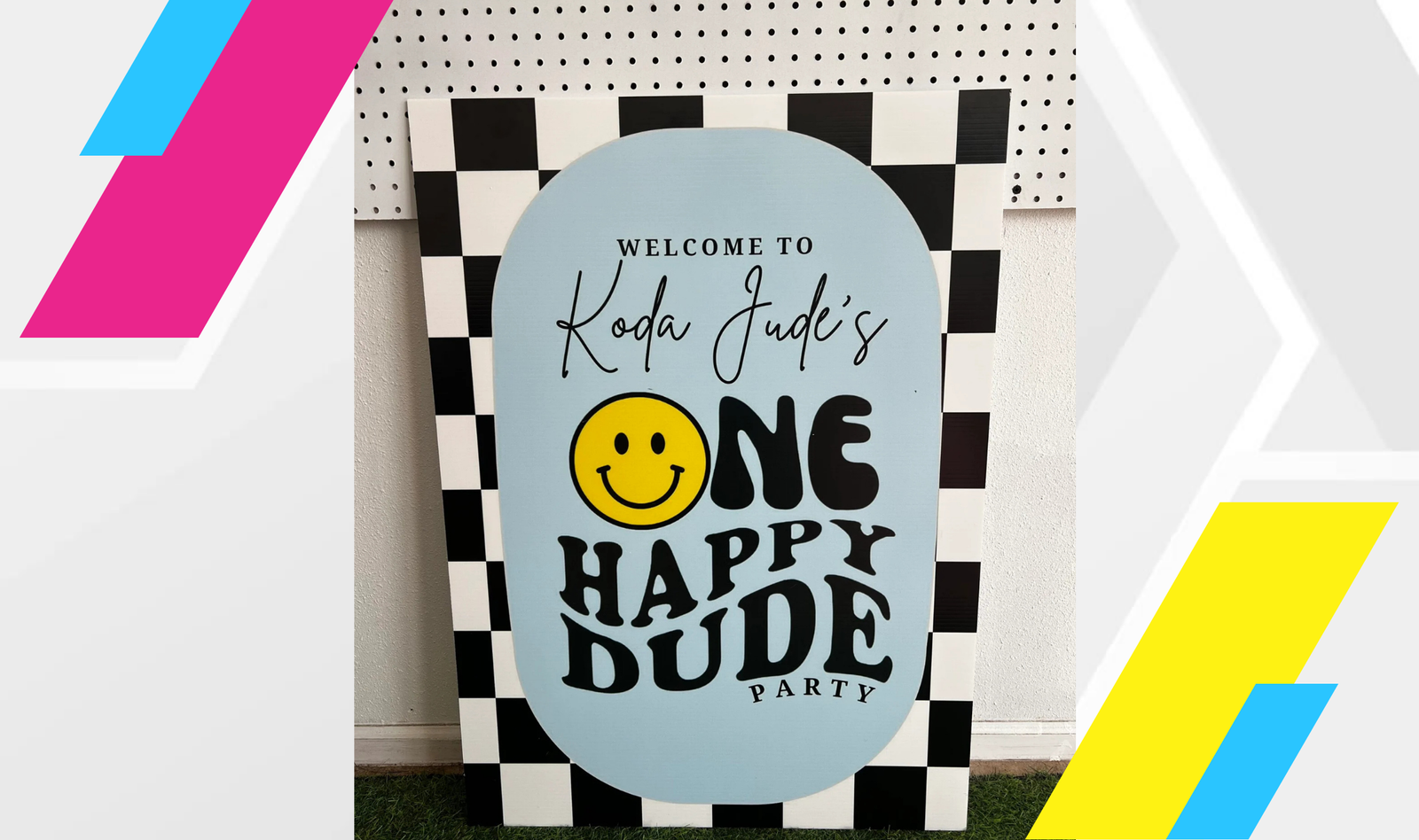Custom welcome signs designed to set the tone for your event. Made from materials like foam board, coroplast, acrylic, or wood. Available in a variety of sizes, finishes, and styles to match any theme.